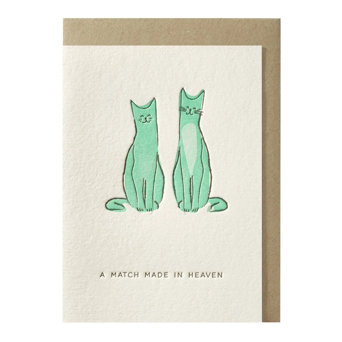 Zwei mintgrüne Katzen sitzen lieblich nebeneinander und strahlen Frieden, Vertrauen und Verbundenheit aus. Mit dem Text „Ein himmlisches Paar“ ist diese Karte ideal für Verliebte, Frischvermählte oder Ihr Lieblingspaar, die einfach füreinander geschaffen sind.