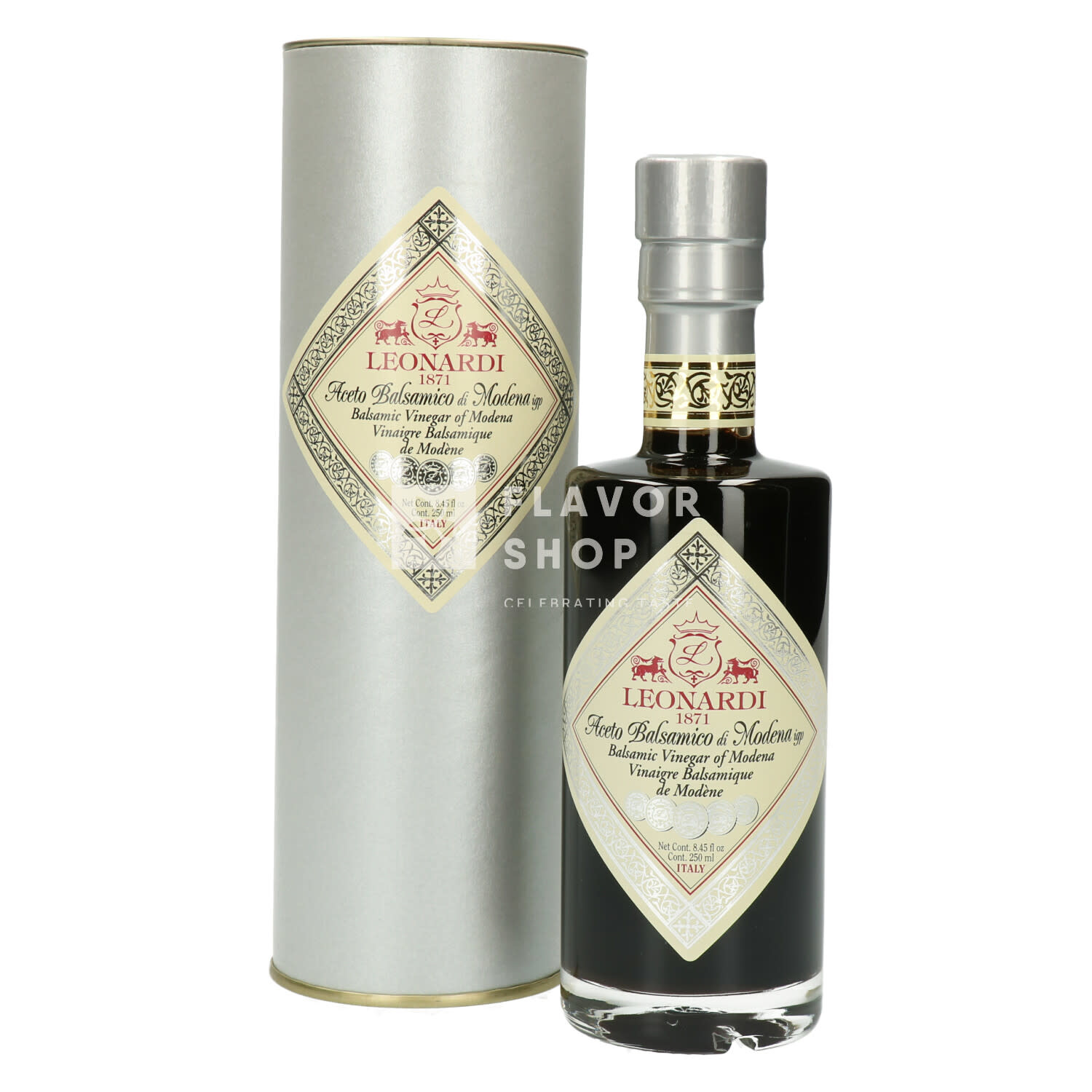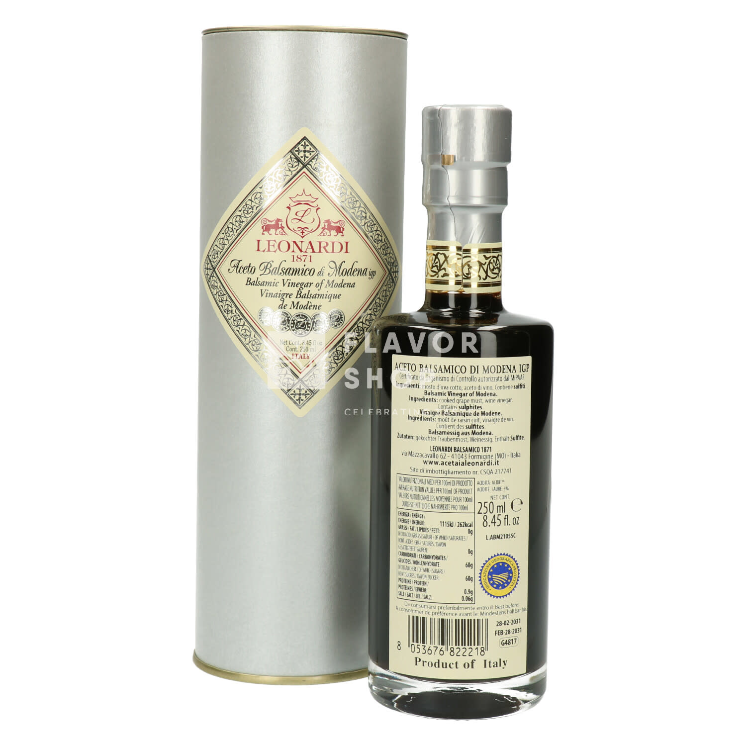 Balsamico Leonardi wurde in den Hügeln von Modena geboren, einem Ort, an dem die typischen Rebsorten Lambrusco und Trebbiano wachsen. Der Traubenmost ist die Zutat, die die Qualität des Modena-Balsamessigs bestimmt. Die Familie Leonardi verfolgt alle Phasen der Herstellung dieses edlen und alten Essigs: braun, samtig, vielseitig, perfekte Balance der Aromen und süß-sauren Geschmacksrichtungen.