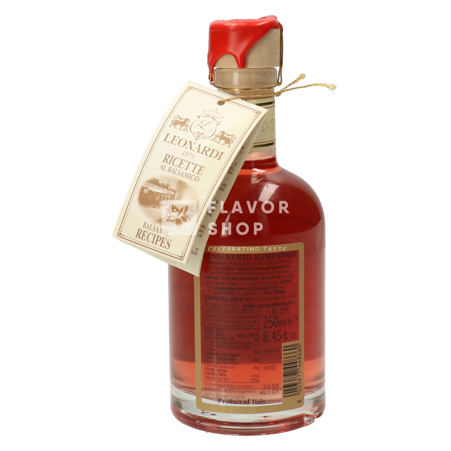 Als elegantes Gewürz eignet sich der Balsamico Rosé von Leonardi für den täglichen Gebrauch. Ideal für: gemischte Salate, rohes und gekochtes Gemüse, Saucen, Fisch und Meeresfrüchte, Geflügel, Käse, Snacks und frisches Obst.