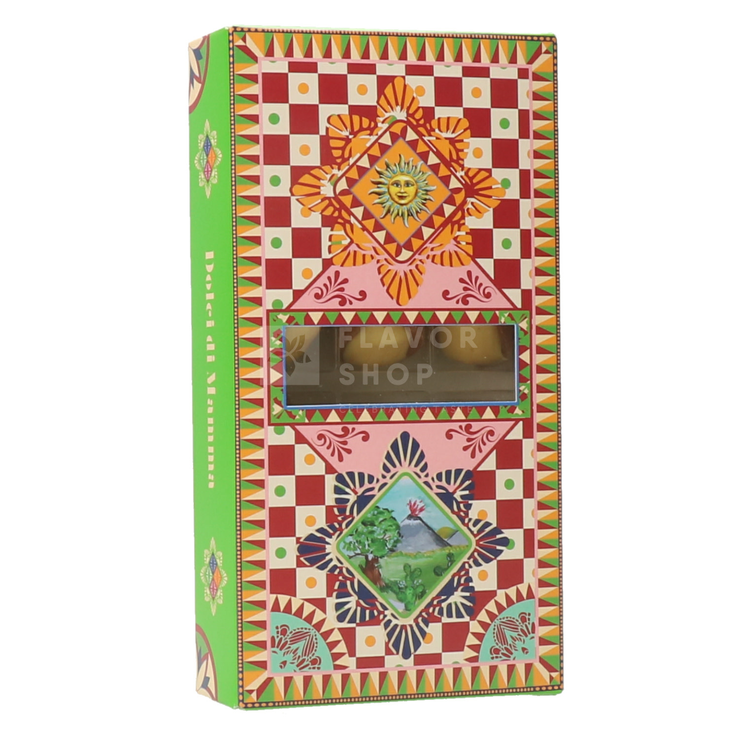 Die festliche Verpackung in leuchtenden sizilianischen Farben macht dieses Cannoli zu einem perfekten Geschenk oder einer luxuriösen Ergänzung für ein Dessertbuffet.