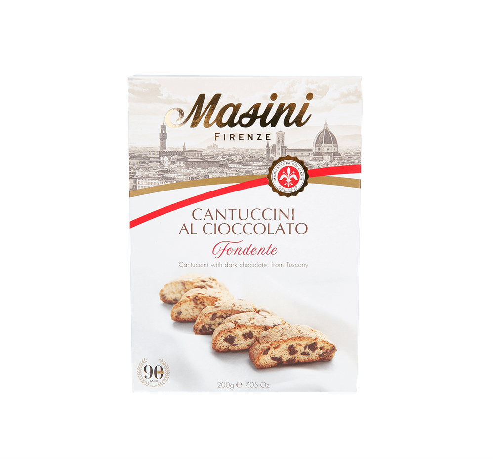 Diese handwerklich hergestellten Biscotti werden in der Toskana hergestellt und sind eine beliebte Variante der klassischen Mandelvariante. Statt Nüssen sind sie großzügig mit 22 % hochwertiger Zartbitterschokolade gefüllt – ohne künstliche Aromen, dafür mit natürlichem Vanilleextrakt für einen dezenten, raffinierten Geschmack.