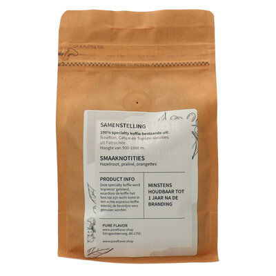 Die Bohnen stammen von den Sorten Bourbon, Catuai und Topazio und werden auf natürliche Weise verarbeitet: Die reifen Kaffeekirschen werden etwa 20 Tage lang in dünnen Schichten in der Sonne getrocknet. Dieses Verfahren ergibt einen Kaffee mit einer vollen Süße und feinen fruchtigen Nuancen, perfekt für Espresso.