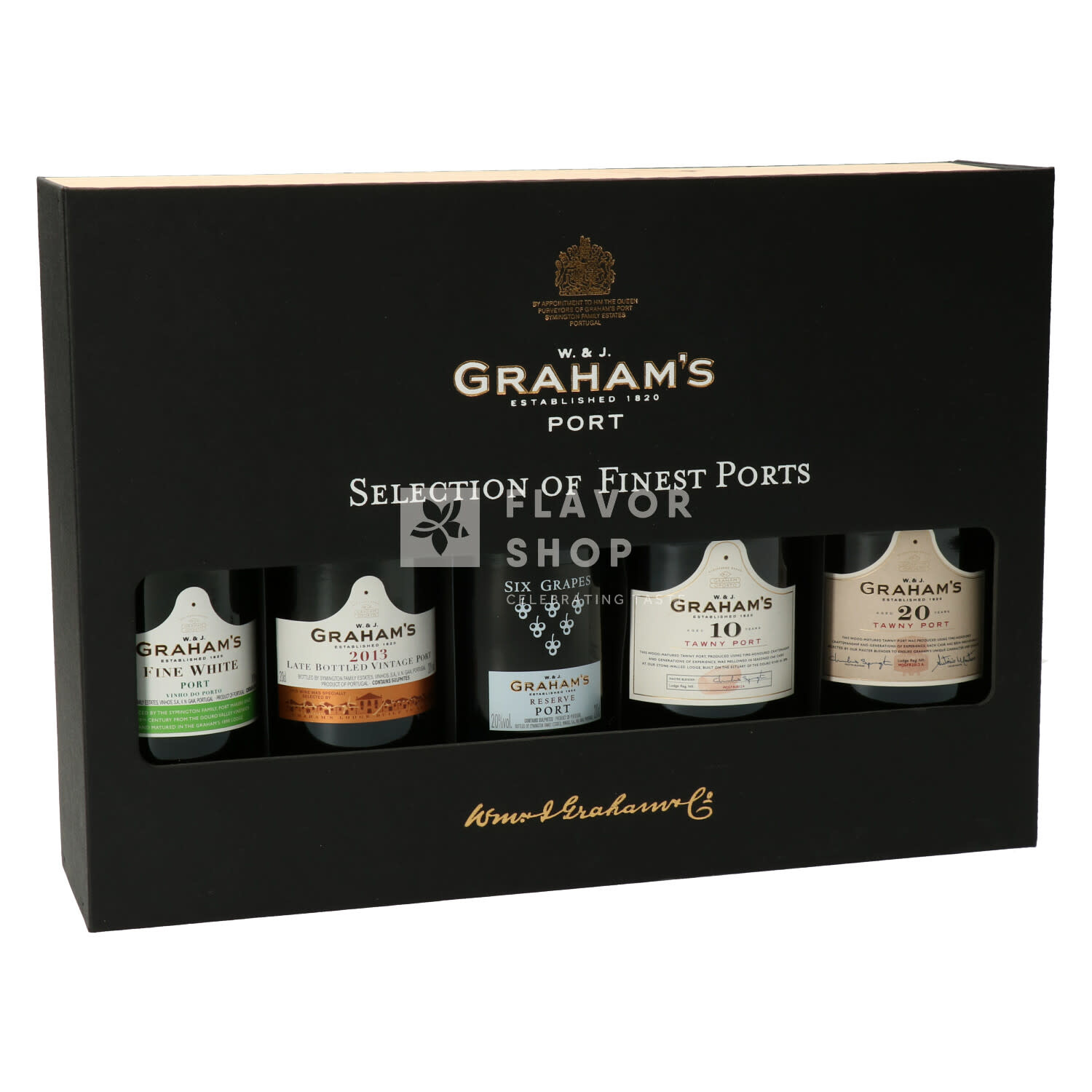 Entdecken Sie das Beste von Graham's Porto in dieser Verkostungs-Geschenkbox. Eine Auswahl von nicht weniger als 5 hochwertigen Portweinen nimmt Sie mit auf eine Entdeckungsreise durch verschiedene Geschmacksrichtungen, Aromen und Texturen. Genießen!