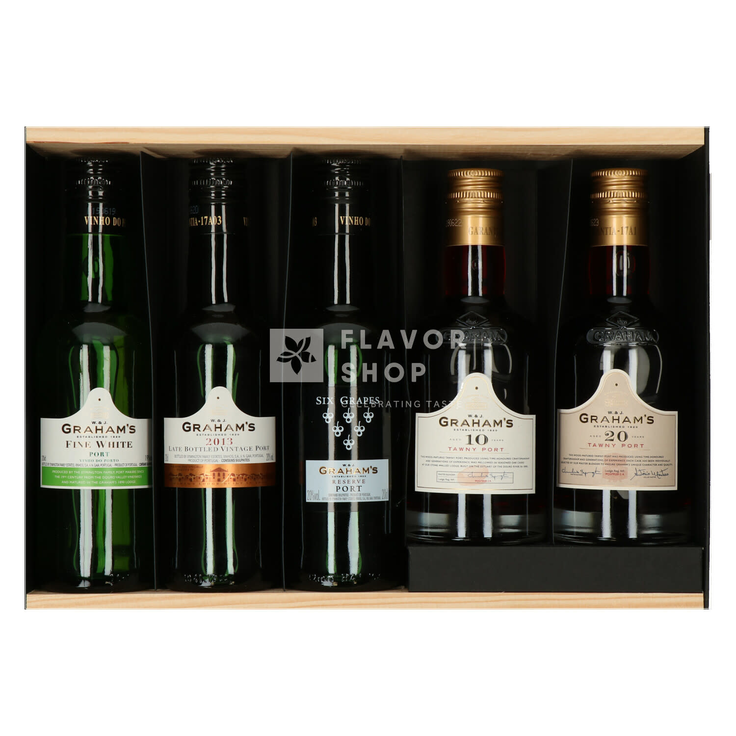 Eine Verkostungs- und Geschenkbox mit einer Auswahl von 5 raffinierten Portweinen aus dem berühmten Haus Graham's.