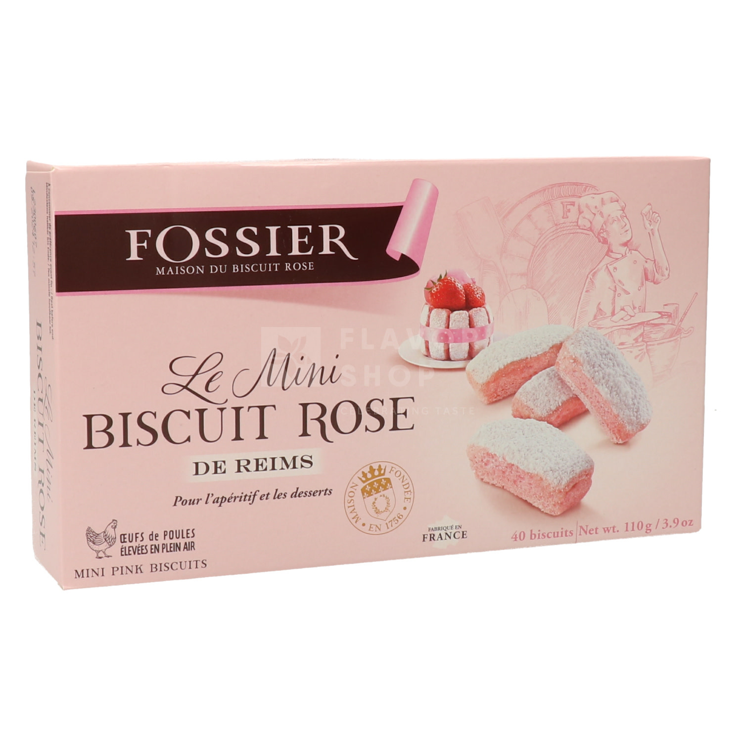 Entdecken Sie den raffinierten Geschmack und die einzigartige Textur des Biscuits Rose de Reims Mini, fachmännisch hergestellt von Maison Fossier, der ältesten Keksfabrik Frankreichs seit 1756.