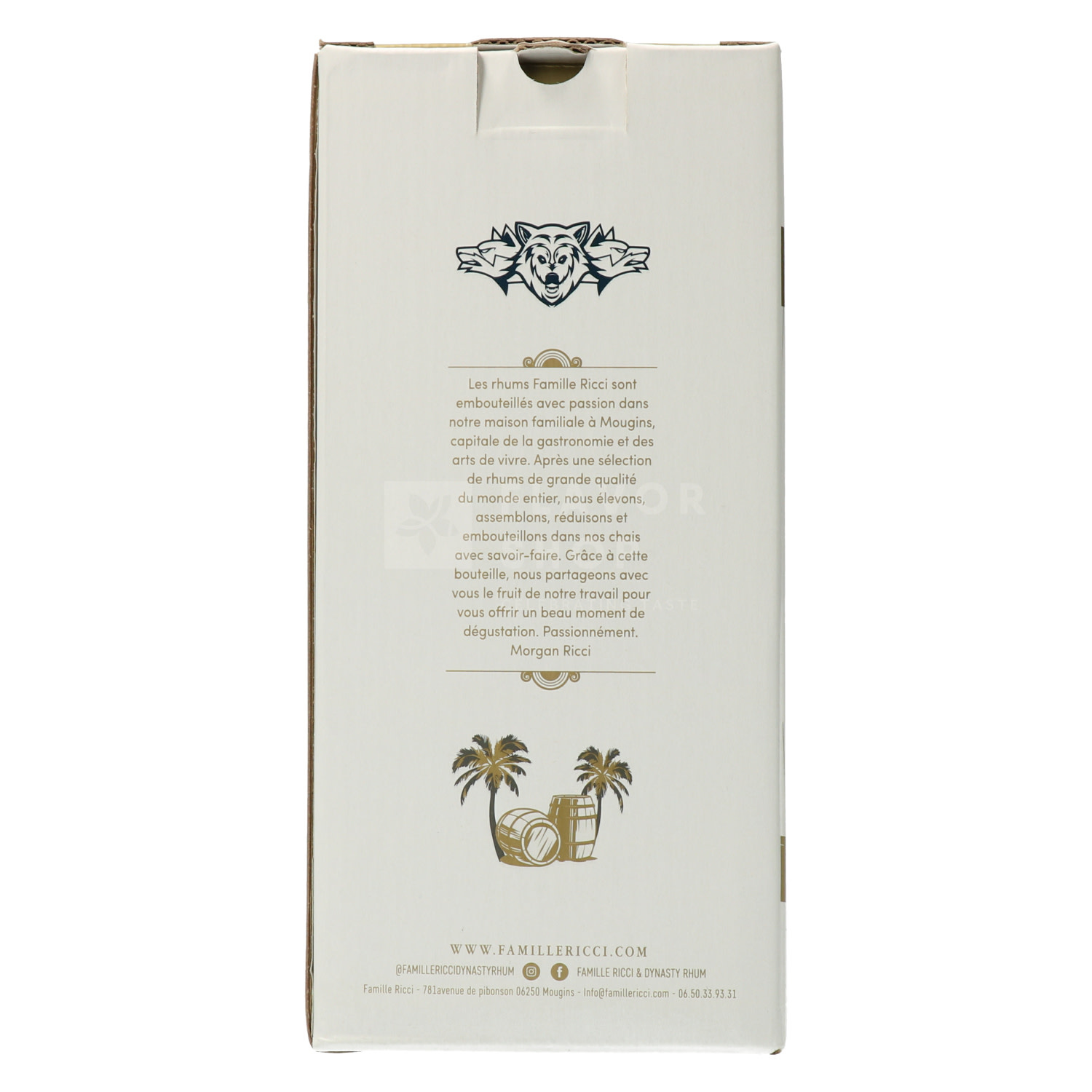 Die Rumsorten der Familie Ricci werden mit Leidenschaft in Mougins, Frankreich, der Hauptstadt der Gastronomie und Lebenskunst, abgefüllt. Nachdem sie hochwertige Rumsorten aus der ganzen Welt ausgewählt haben, reifen sie, mischen, reduzieren und füllen sie in den Familienkellern ab.
