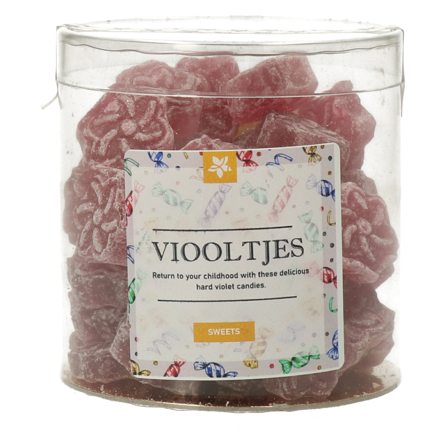 Kehren Sie mit diesen köstlichen harten violetten Bonbons in Ihre Kindheit zurück. Sie sind voller Veilchengeschmack. Groß und Klein sind Fans unserer Süßigkeiten.