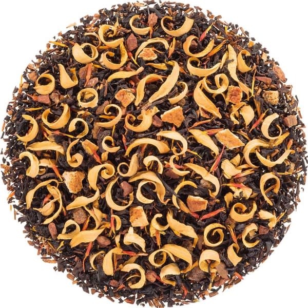 Zutaten: Schwarzer Tee, Rooibos, Zimt, Dattel, Orangenschale, Orangenblüte, Distelblüten, Aroma.