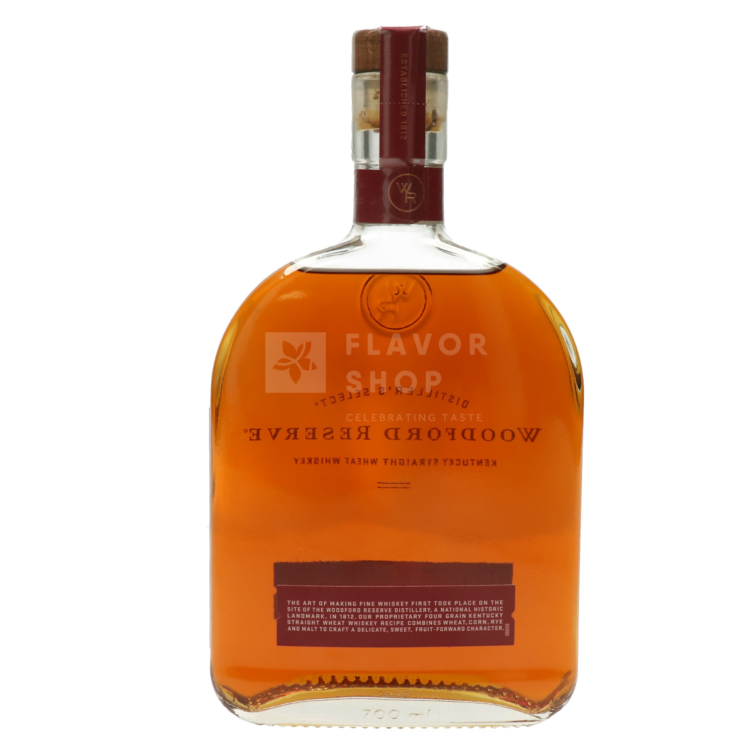 Woodford Reserve Straight Wheat basiert auf historischen Rezepten, ist jedoch von der legendären Marke Woodford Reserve Bourbon beeinflusst. Der Whisky enthält als Hauptgetreide Weizen (52 %), gefolgt von Malz (20 %), Mais (20 %) und Roggen (8 %). Dies verleiht diesem Straight Wheat Whisky fruchtige und blumige Aromen.