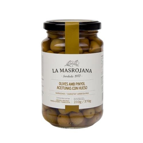 La Masrojana's pitted Arbequina olives are a true delicacy from the Terra Alta region of Catalonia. Selected from the small but flavorful Arbequina olive, these olives are known for their soft texture and mild, nutty flavor. They are traditionally fermented and packed in brine, without artificial additives.