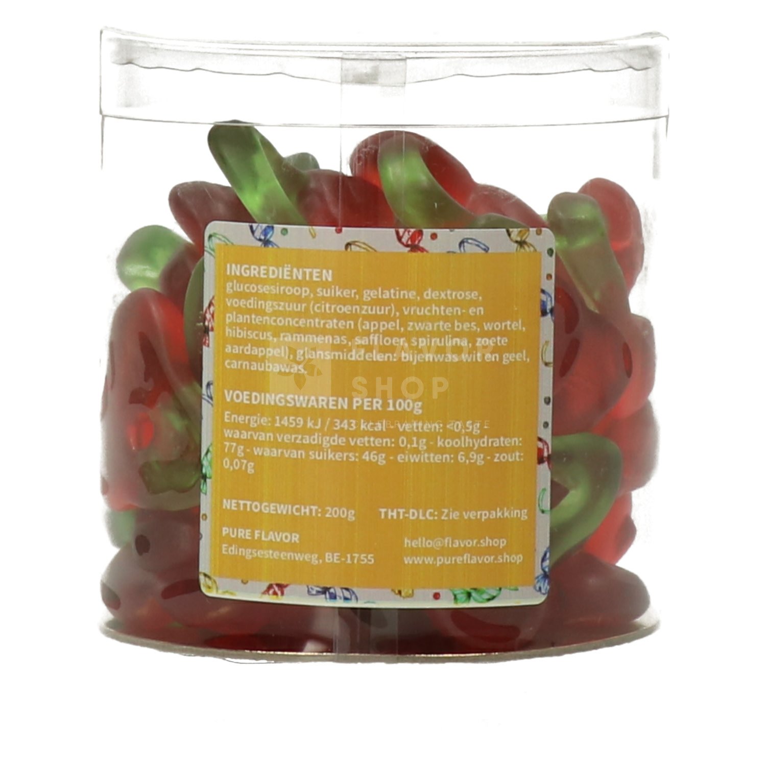 Pure Flavor Cherries are soft, chewy candies with a rich cherry flavor and a playful appearance. The combination of deep red and green hues, inspired by real cherries, makes these candies not only delicious but also visually appealing. Who didn't hang these behind their ears during their childhood? ;)