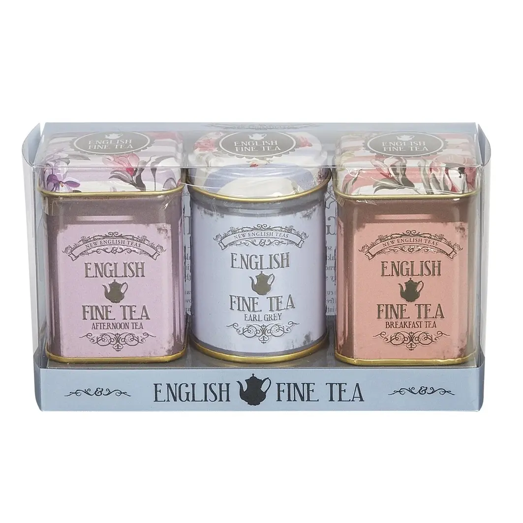 An elegant tea gift for the true tea lover! This beautiful gift set contains three luxurious mini tea tins in classic English style, each filled with carefully selected loose black tea. The delicate floral prints on each tin create a charming vintage look, perfect for giving as a gift or enjoying yourself.