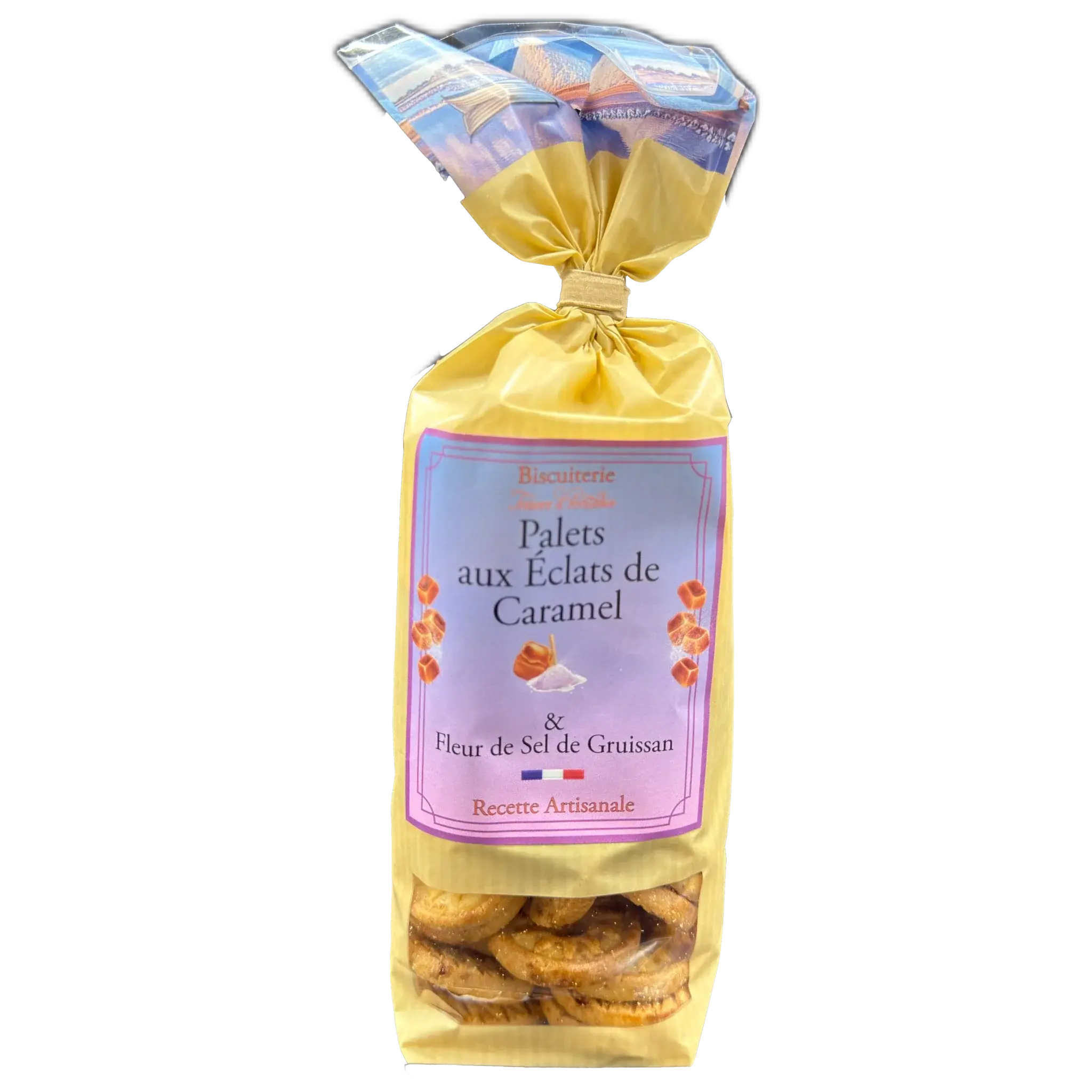 Let yourself be seduced by the perfect balance of sweet and savory with these artisan-baked palets from Occitanie. Each bite reveals the biscuit's rich, buttery softness, surprisingly punctuated by crunchy caramel bits and rounded out with a subtle touch of fleur de sel from the Gruissan salt flats.