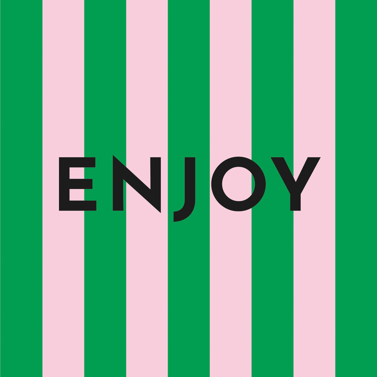 The “Formart Enjoy” napkins measuring 33x33 cm combine a sleek design with a playful use of colour. The alternating pink and green vertical stripes form a striking background for the modern black font with the message “ENJOY”. Minimalist and powerful at the same time – ideal for any occasion where enjoyment is involved.
