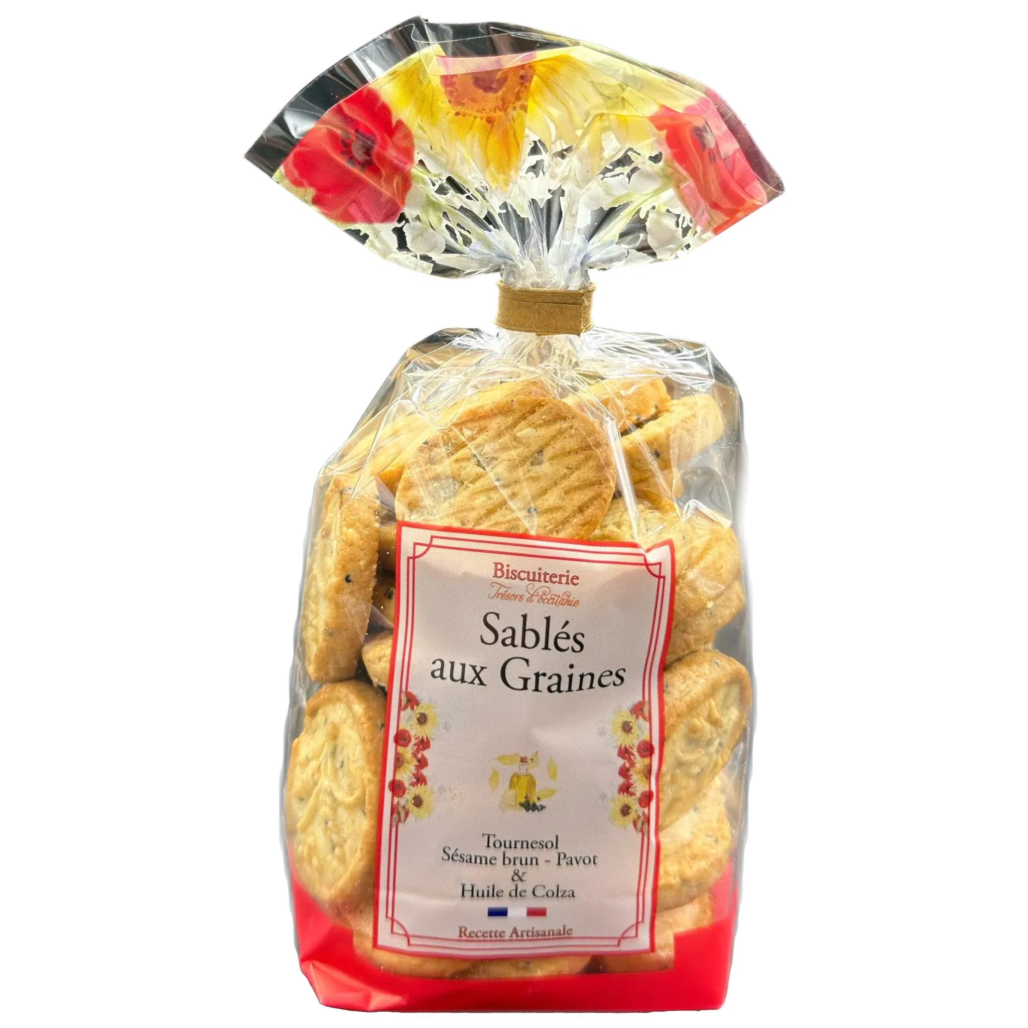 Ingredients: Occitania WHEAT flour, sugar, rapeseed oil, seeds (sunflower, sesame, poppy seeds), EGG, RYE flour, OAT flakes, corn starch, baking powder (disodium diphosphate, sodium carbonate, corn starch), salt.