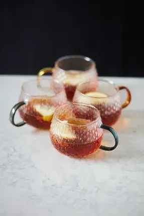 This set of four cups combines elegance with playful details. Made of borosilicate glass, the cups are resistant to sudden temperature changes, making them safe for hot tea, cold lemonade, or iced coffee.