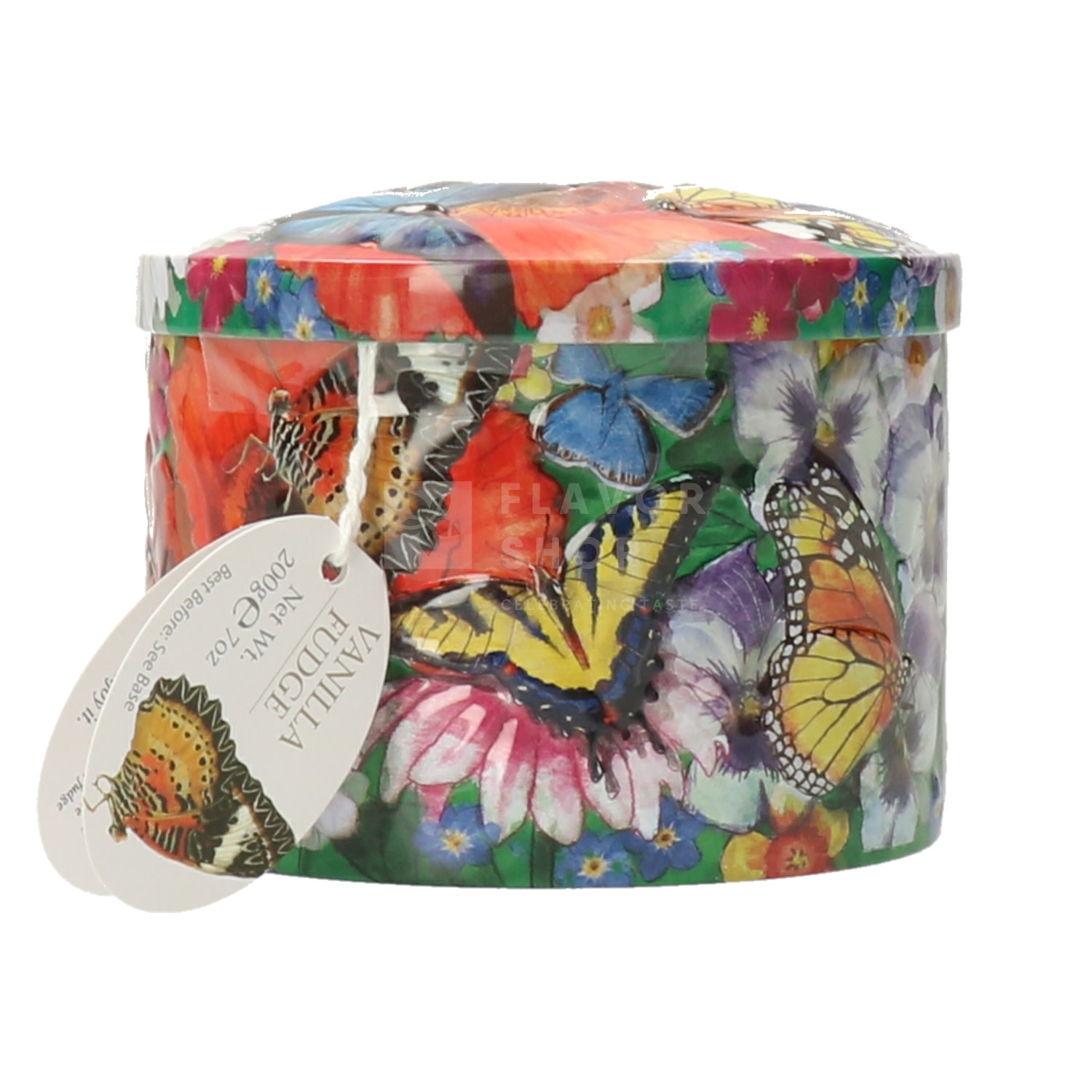 Looking for a gift that's both beautiful and delicious? This elegant gift box with butterflies, flowers, and hummingbirds is overflowing with soft, handmade vanilla fudge—a real treat!