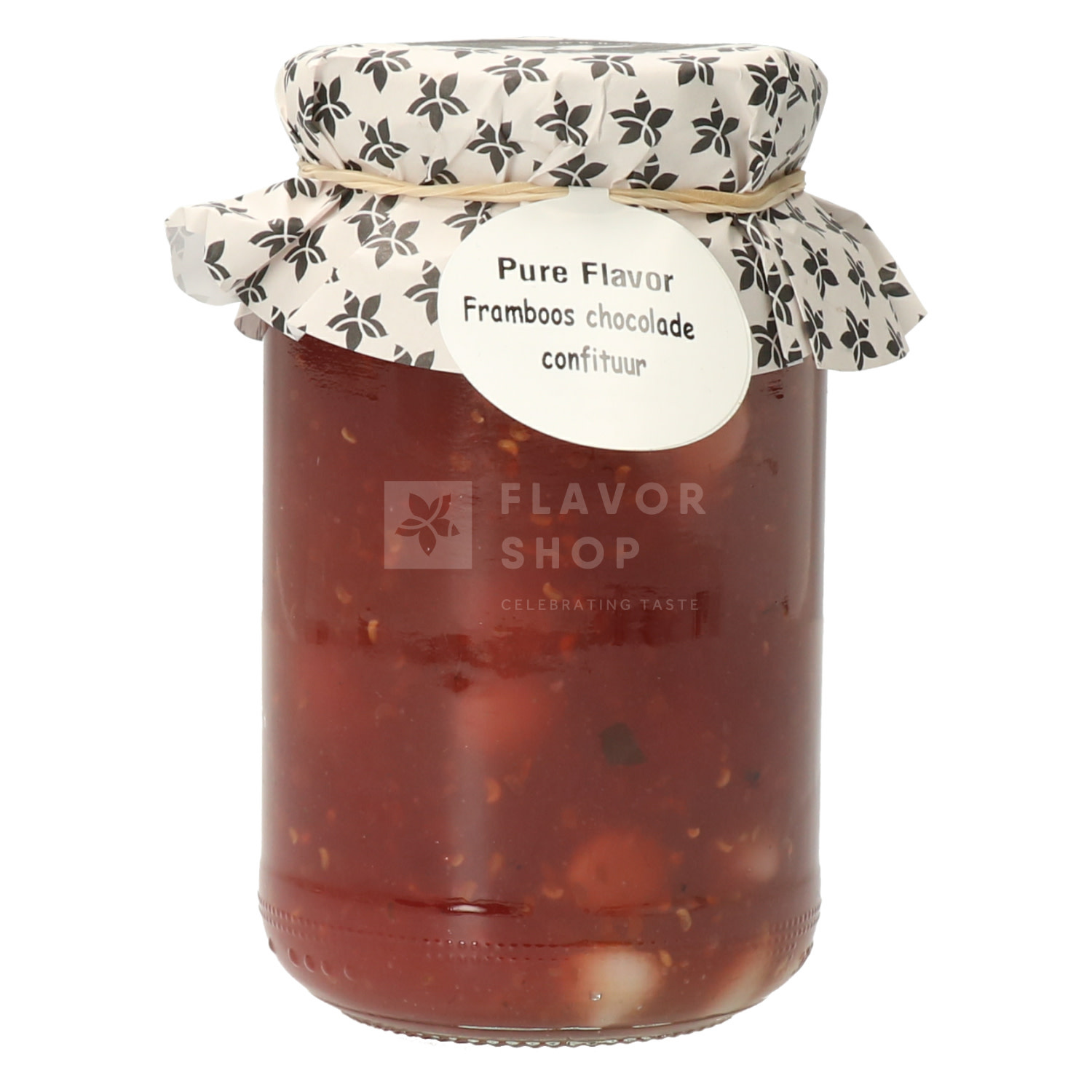 Les délicieuses confitures Pure Flavor sont fabriquées de manière artisanale et sans conservateurs ni autres additifs. Et ils sont méga délicieux ! Le grand secret de ces confitures est de n'utiliser que les meilleurs fruits mûrs et seulement un tiers de la quantité habituelle de sucre ! Cela rend cette confiture de framboises et de chocolat non seulement plus savoureuse, mais aussi plus saine.
