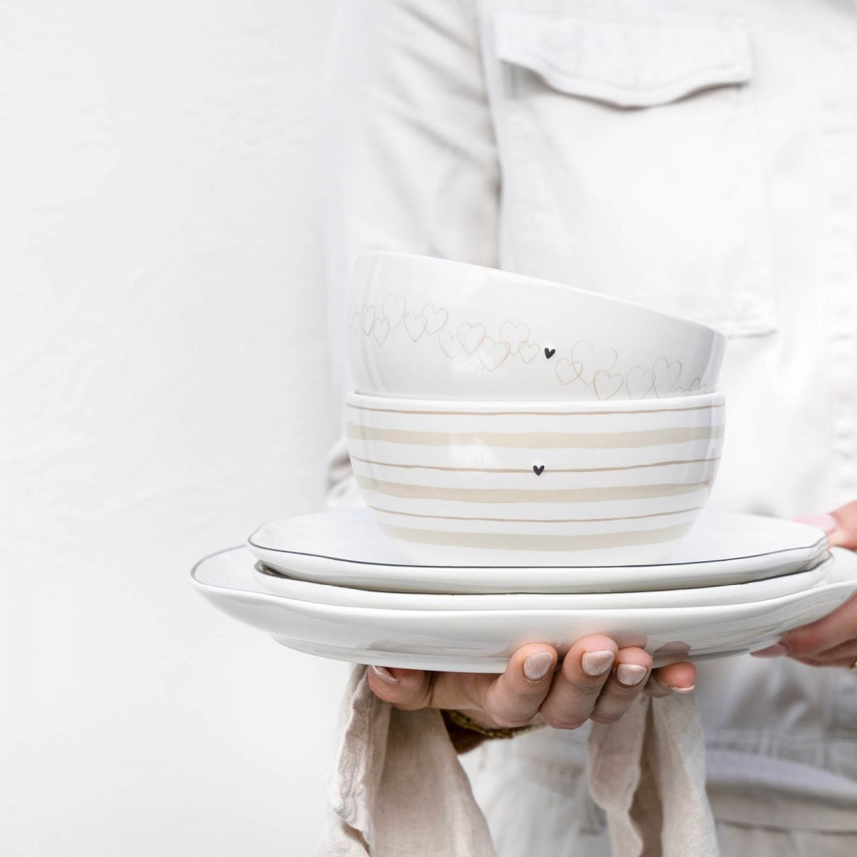 Le bol « Natural Hearts All Around » de Bastion Collection ajoute un détail ludique et affectueux à votre vaisselle. Le motif en forme de cœur gracieusement représenté autour du bol dans des tons terreux doux en fait un choix unique pour n'importe quel repas.