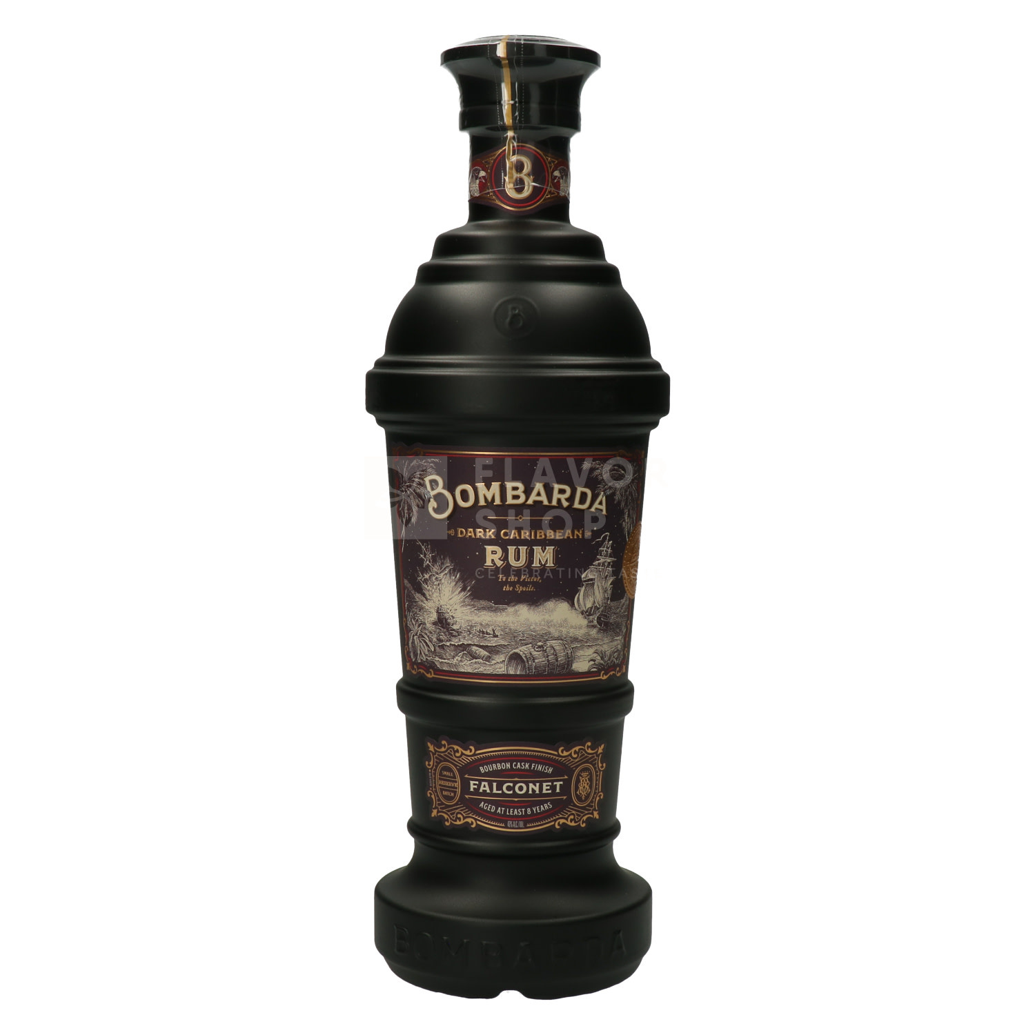 Bombarda Falconet est un assemblage rare de rhums noirs, doublement vieillis en fûts de Bourbon et de chêne, pendant 8 ans.
