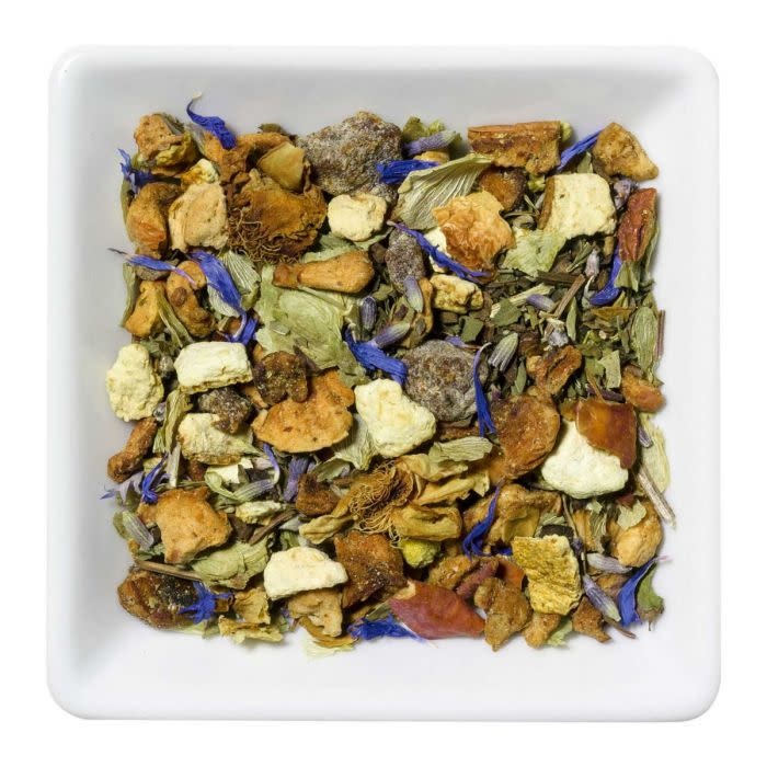 Des morceaux de pomme et des agrumes apportent une fraîcheur légère, tandis que la menthe poivrée et la valériane ont un effet apaisant et relaxant. Les fleurs de bleuet ajoutent une touche finale visuelle et aromatique. Sans caféine et composée uniquement d'ingrédients naturels, cette tisane est idéale avant de dormir ou après une journée de travail intense.