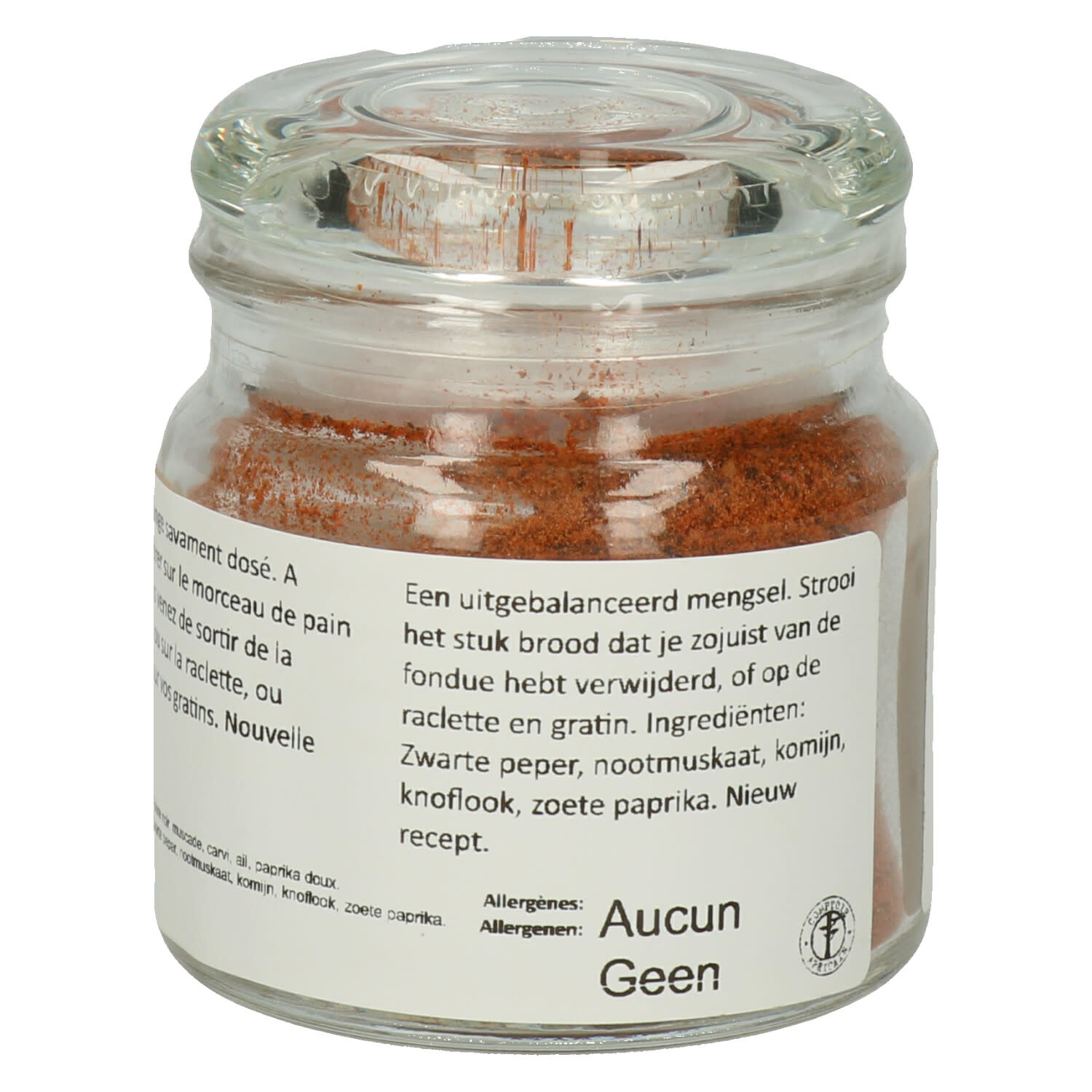Ingrédients: muscade, carvi, poivre, ail, oignon, thym, livèche