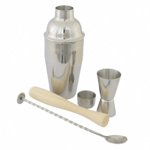 Cet ensemble à cocktail amusant contient 4 pièces essentielles pour votre meuble bar ! Une cuillère de bar, un jigger, un pilon et un shaker. Tout ce dont vous avez besoin pour préparer le cocktail parfait