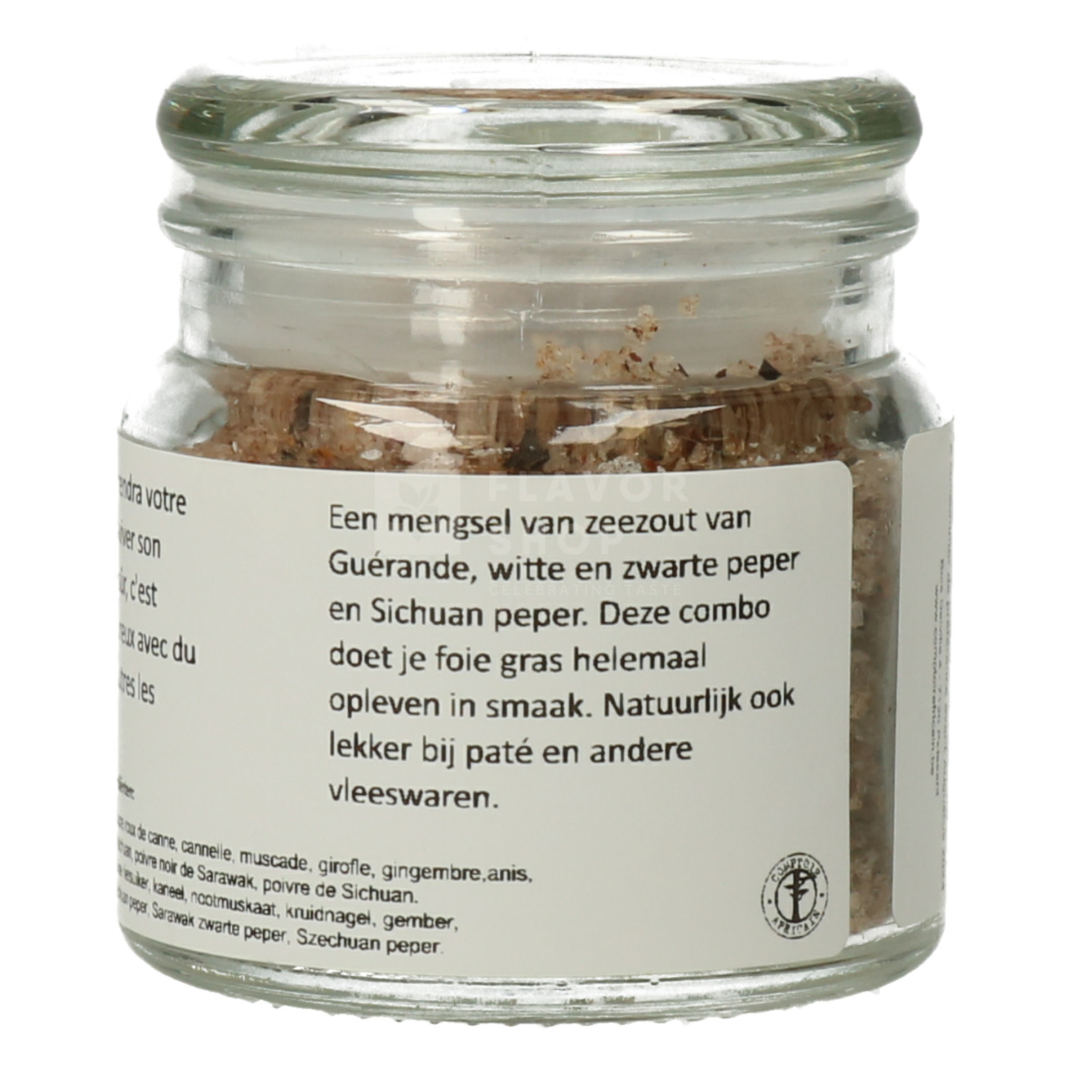 Ce sel de foie gras est un assaisonnement pour le foie gras et autres produits carnés.