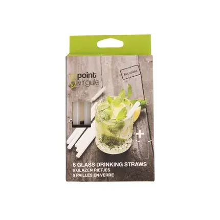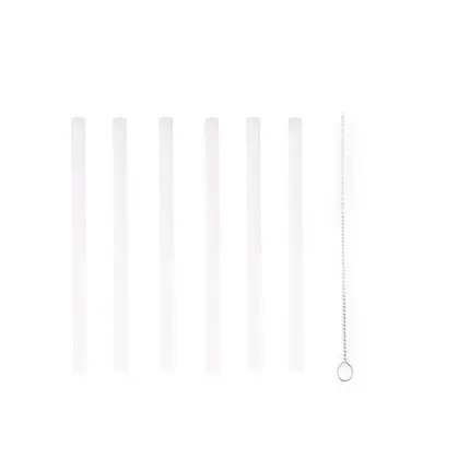 Savourez vos boissons de manière élégante et durable avec ces pailles en verre réutilisables de couleur blanche. L'ensemble comprend six pailles et une brosse de nettoyage pour un nettoyage facile.