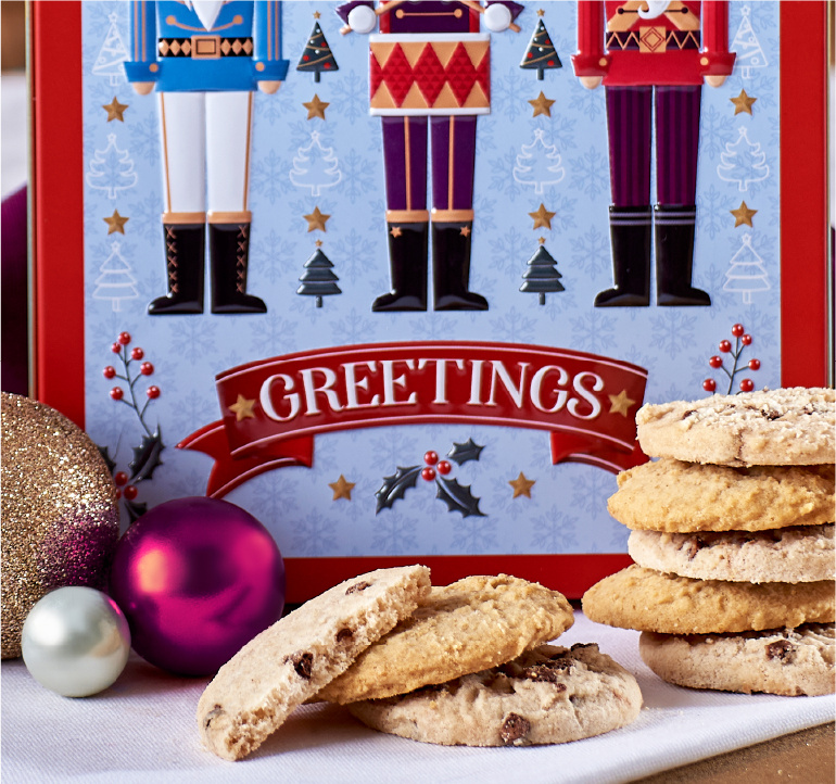 La boîte à biscuits Nutcracker de Grandma Wild est un régal festif, décoré de casse-noix colorés qui capturent parfaitement l'esprit de Noël. À l'intérieur, vous trouverez une combinaison irrésistible de biscuits : des biscuits épicés au gingembre et au citron, qui offrent un délicieux équilibre entre le gingembre épicé et le citron frais, et de riches sablés aux pépites de chocolat à la crème caillée, remplis de morceaux de chocolat noir et au goût crémeux grâce au caillé. crème. Cette belle boîte contenant 300g de gourmandises est un cadeau parfait pour les fêtes ou une délicieuse gourmandise à se faire plaisir.
