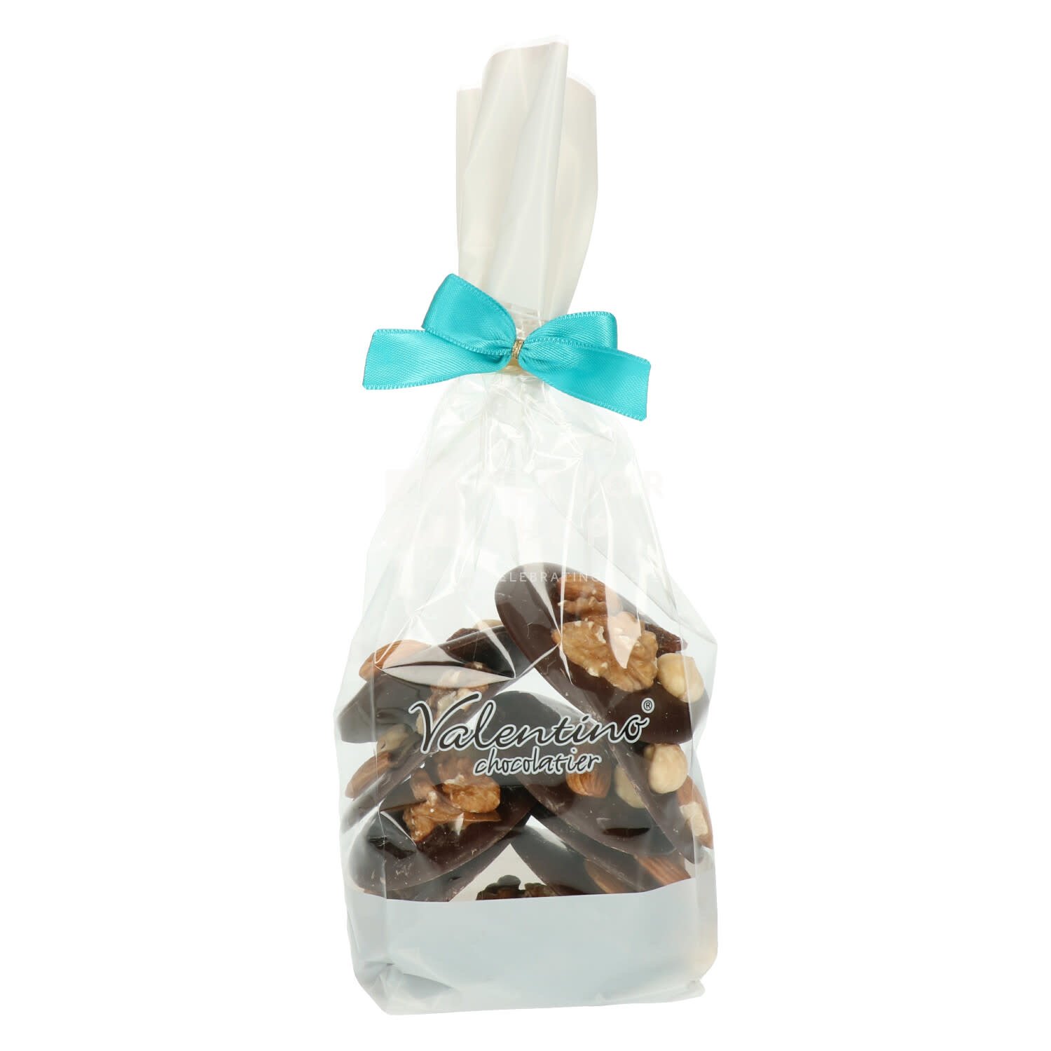 Chocolat fondant belge, un mélange de noix et de raisins secs. La collation parfaite entre les deux ! Ces mendiants sont fabriqués à la main par les chocolatiers Valentino.