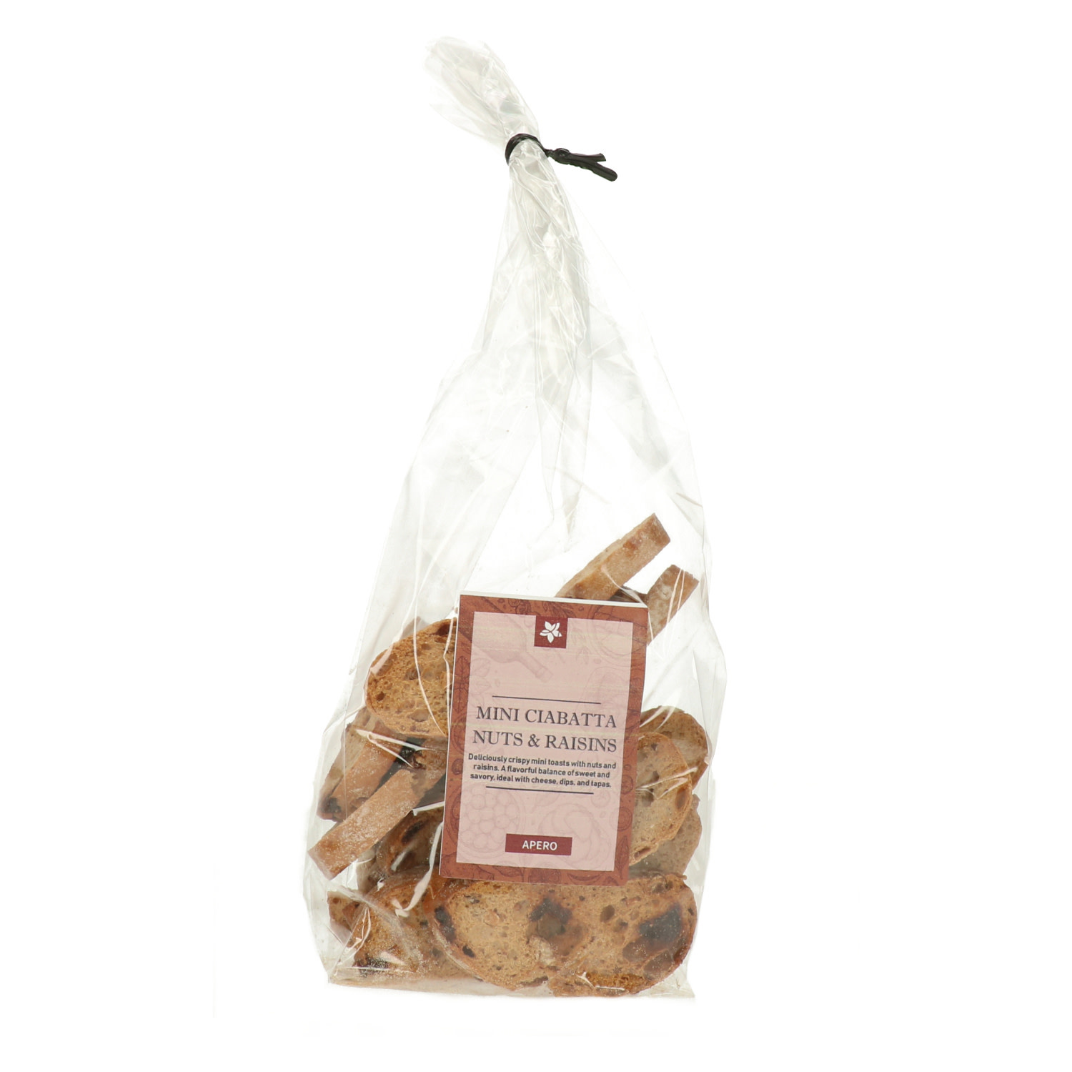 Les Mini Ciabatta aux Noix et Raisins de Pure Flavor sont des mini-toasts croustillants, confectionnés à partir de pain ciabatta artisanal et enrichis de noix et de raisins secs hachés. L'alliance d'une texture croquante, d'un arôme de noix et de la douceur des raisins secs fait de ces toasts une expérience gustative unique.