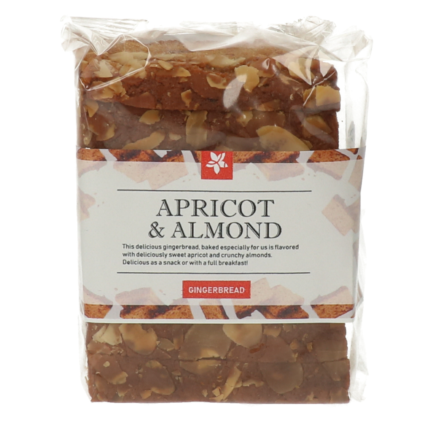 Ce délicieux pain d'épices, cuit spécialement pour nous, est délicieusement parfumé à l'abricot délicieusement doux et aux amandes croquantes. Délicieux comme collation ou avec un petit déjeuner copieux!