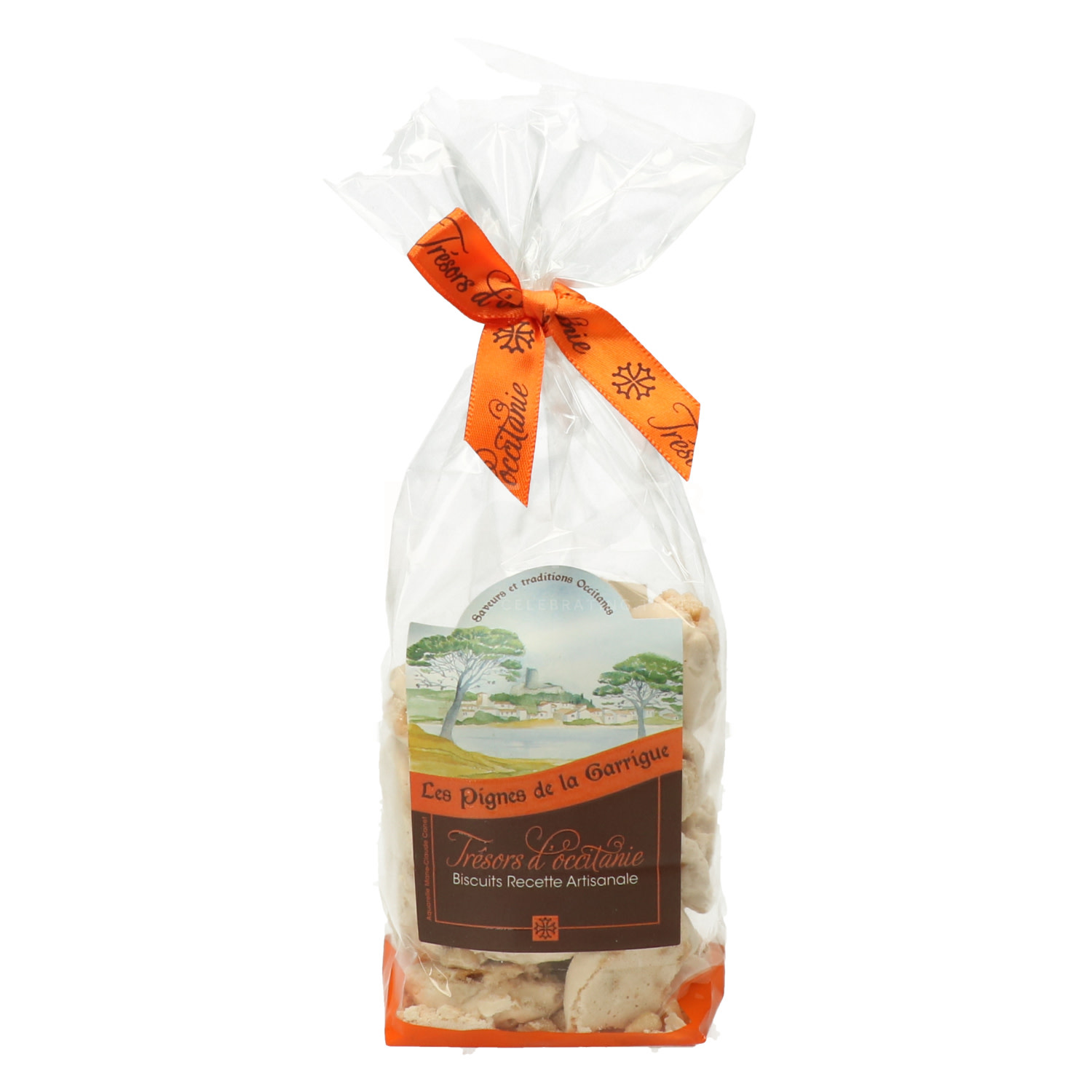 La Pigne de la Garrigue est une gourmandise élégante et aérienne, préparée avec des blancs d'œufs battus en neige, enrichie de pignons de pin grillés et subtilement parfumée à la vanille. Il en résulte un biscuit raffiné, croustillant à l'extérieur et fondant en bouche.