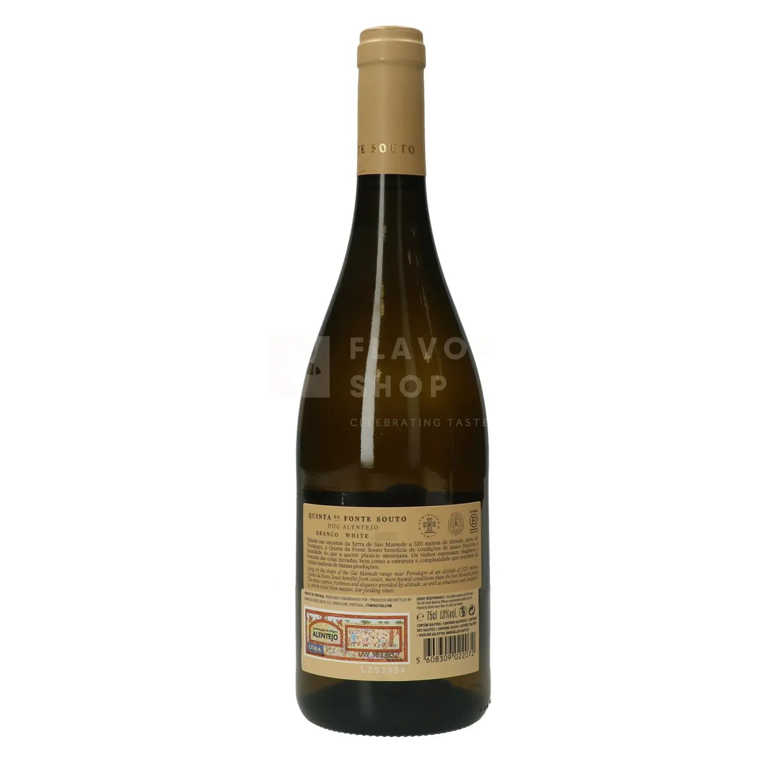 Le Quinta da Fonte Souto est un vin blanc de caractère, issu du nord frais et montagneux de l'Alentejo, à 520 mètres d'altitude, dans la Serra de São Mamede. Cette altitude crée un microclimat tempéré, plus frais et humide que les plaines plus basses et plus chaudes de l'Alentejo, idéal pour un vin blanc de qualité.