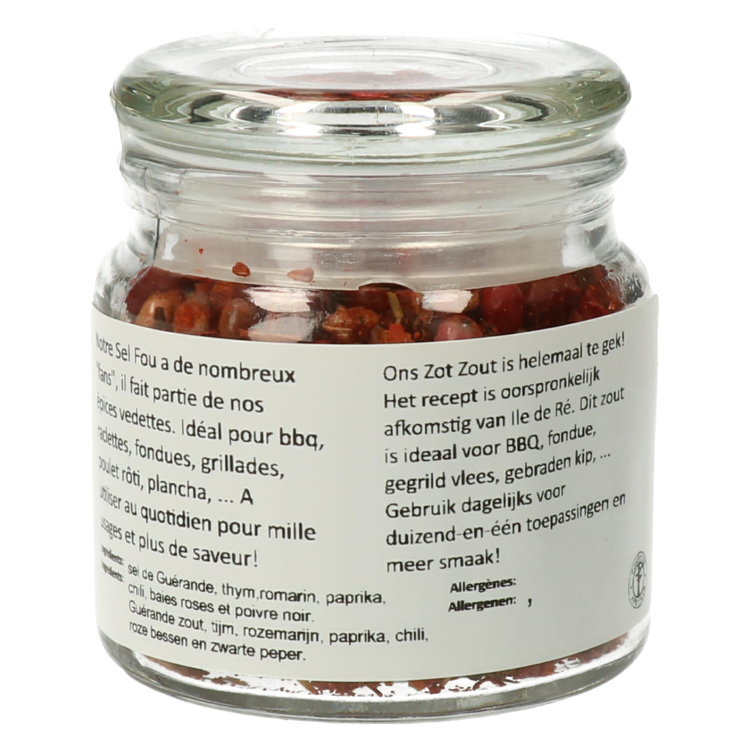 Ingrédients : Sel de Guérande, thym, romarin, paprika, piment, baies roses et poivre noir.