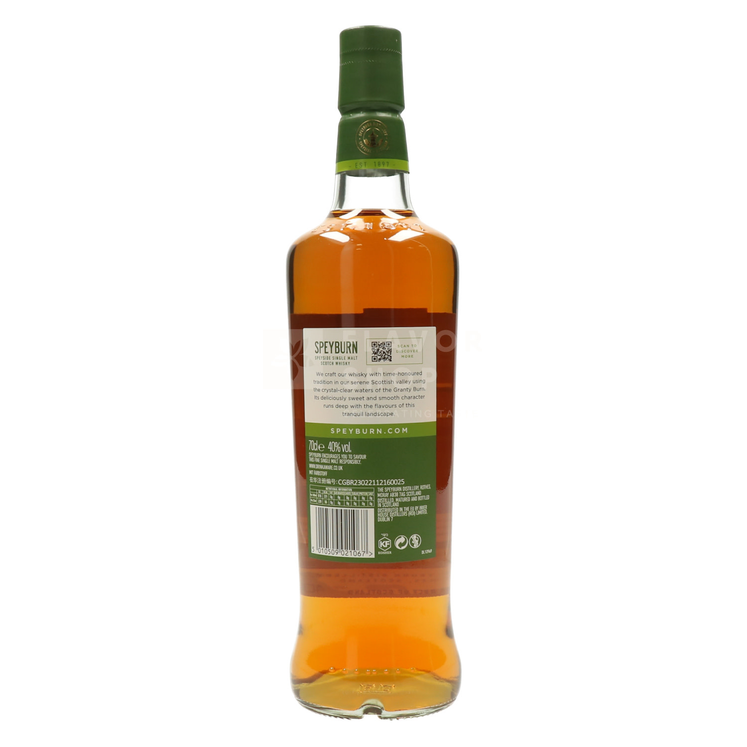 Le single malt Speyburn 10 ans d'âge est élevé dans une combinaison d'anciens fûts de bourbon et d'ex-sherry de chêne américain. COULEUR : Or pâle aux reflets ambrés. NEZ : Frais, net avec une pointe de citron. GOÛT : Corps moyen avec des notes de caramel anglais et de caramel au beurre et une finale longue et douce. Un favori mondial. Le Speyburn 10 ans plaît toujours au public.
