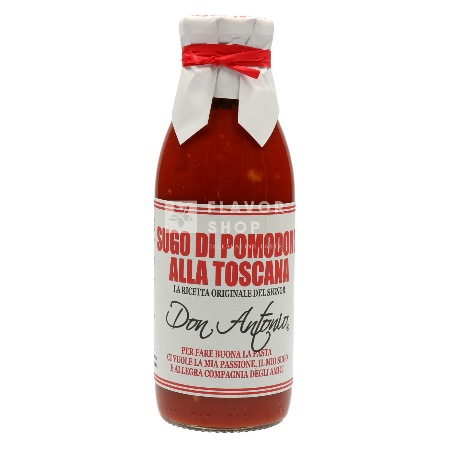 Ramenez l'Italie à la maison avec la sauce pour pâtes toscane de Don Antonio. Une vraie sauce tomate toscane classique pour mettre rapidement des pâtes sur la table comme prévu. La bouteille de lait désormais historique contient la sauce toscane à l'ail, le poivron et l'huile d'olive extra. Cette recette est basée sur l'authentique cuisine de femme au foyer toscane de bon goût. Cuire les pâtes, chauffer la sauce et servir. C'est aussi simple que ça. Préférez-vous quelque chose en plus? Vous pouvez bien sûr améliorer un peu cette sauce en faisant cuire de la viande hachée, du poulet ou des langoustines et éventuellement en ajoutant des légumes supplémentaires.