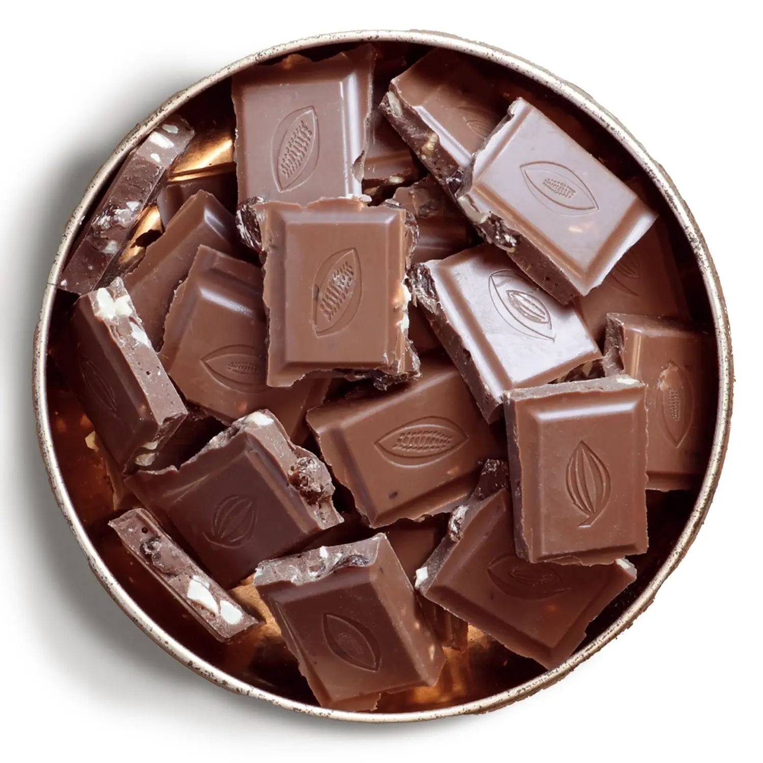Chocolat au lait : min. 30 % de cacao, min. 18 % de lait.