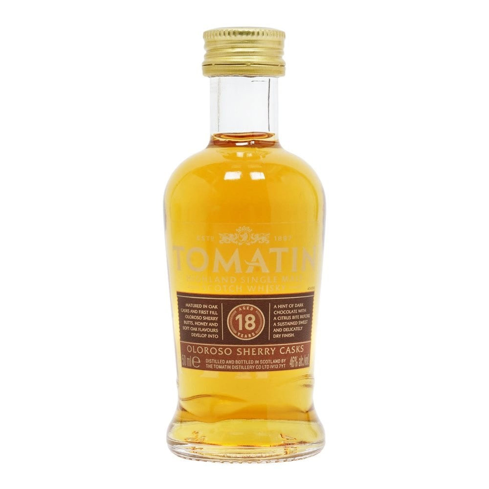 Le Tomatin 18 ans est un whisky single malt luxueux qui se distingue par sa texture soyeuse et son profil aromatique riche et complexe. Ce whisky raffiné mûrit d'abord dans des fûts de chêne traditionnels, puis subit une maturation supplémentaire dans des fûts de Sherry Oloroso. Cela donne au whisky des notes profondes d'abricot sec, de nougat crémeux et une saveur distinctive de noisette, qui se transforment en de fraîches explosions de fruits tropicaux.