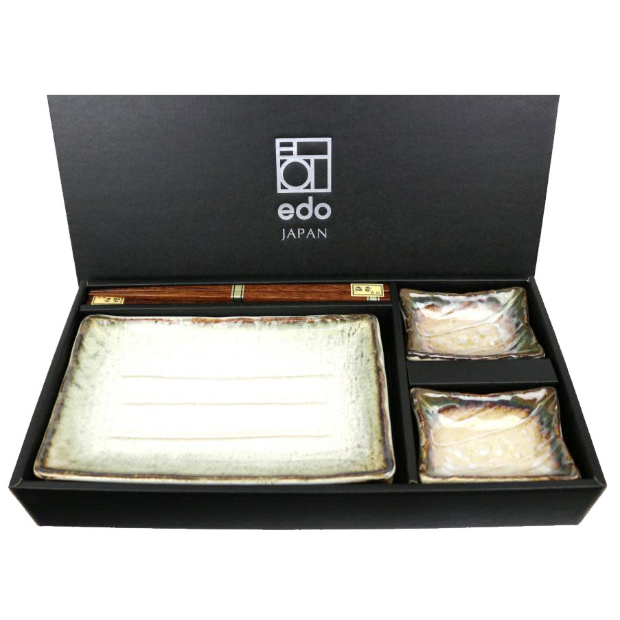 Le set à sushi Tsuno est un ensemble élégant et complet conçu pour deux personnes. L'ensemble se compose de vaisselle en céramique au design élégant, comprenant deux assiettes à sushi, deux bols à sauce soja et deux paires de baguettes en bois de haute qualité. Chaque article a été soigneusement conçu et respire la simplicité traditionnelle de la vaisselle japonaise.