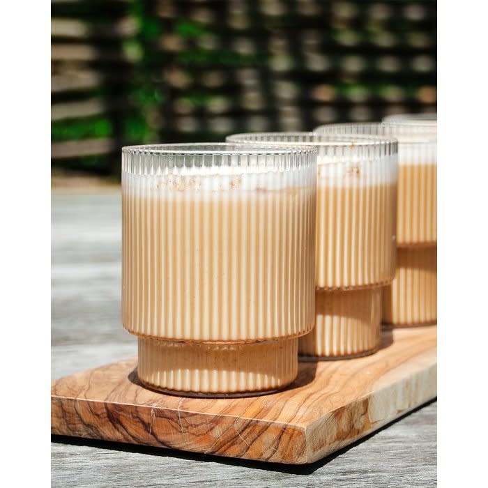 Ingrédients : Sucre, sirop de glucose, huile de coco, thé noir en poudre (3%), épices (1,6%), amidon modifié, émulsifiant : E 472e, stabilisant : E 340, colorant : bêta-carotène, arôme naturel : vanille.