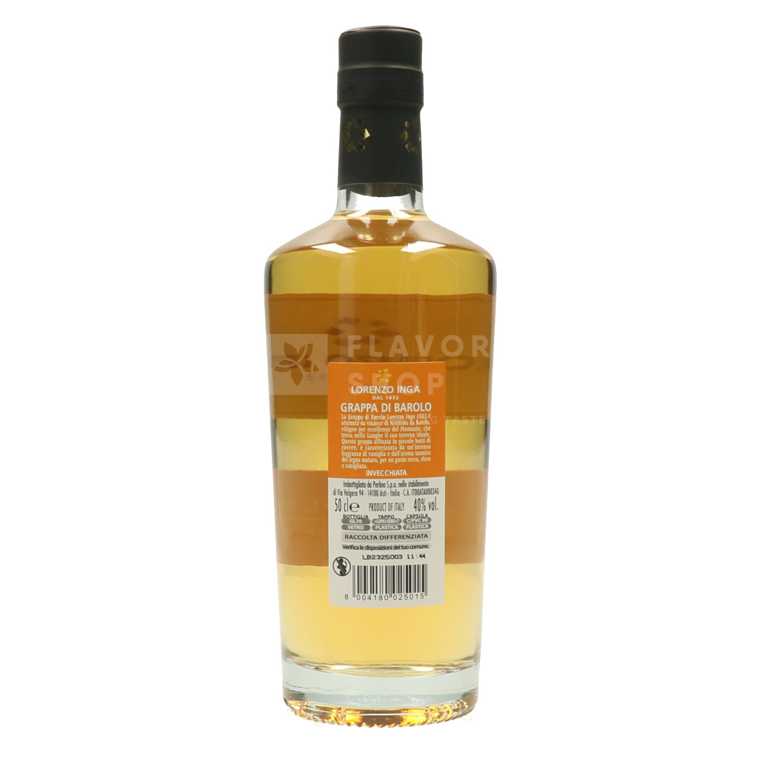 De Barolo Grappa van Lorenzo Inga is een meesterwerk van ambacht en traditie. Gemaakt van de most van de Nebbiolo-druif, afkomstig uit de beroemde wijnregio rond Alba, Barolo en Barbaresco – het kloppende hart van de Piemontese wijncultuur.