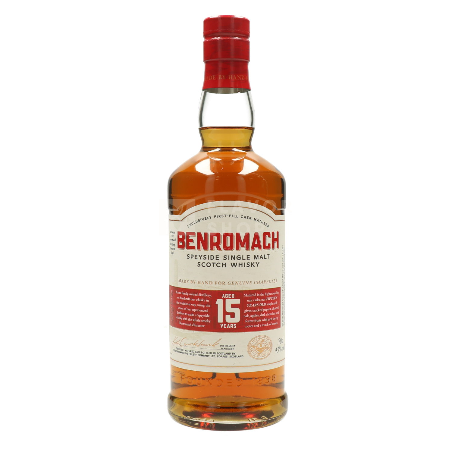 Ervaar de ware essentie van Speyside met de Benromach 15 Year Old, een klassieke, bekroonde single malt whisky waarin de invloed van het vat en een subtiele rokerigheid perfect in balans zijn. Een absolute favoriet onder whiskyliefhebbers.