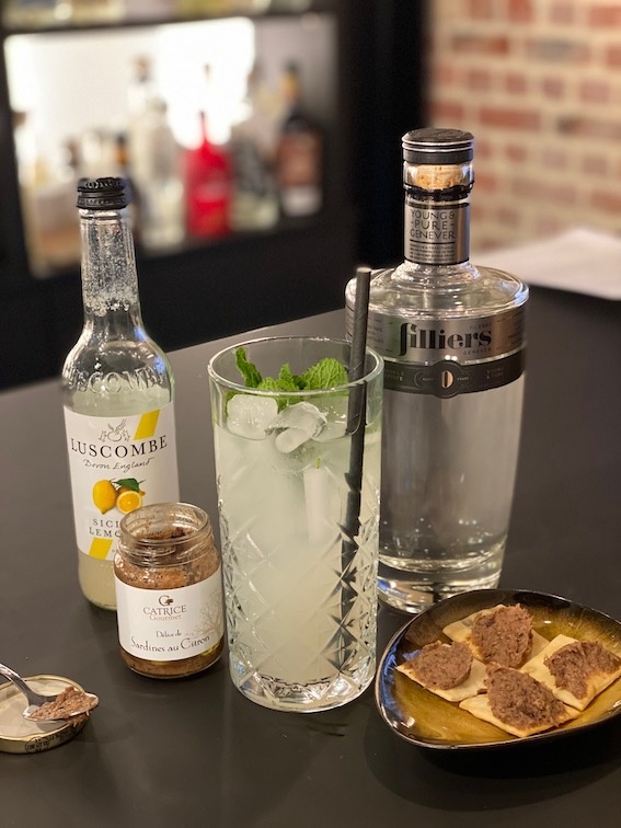 Het ideaal hapje voor bij deze cocktail. Op een klein bordje beleg je de toastjes met de een tapenade van sardines en citroen. Je kan eventueel een tapenade van sardines (klassieke sardinade), tapenade van tonijn (thoïonade) of tapenade van gerookte zalm gebruiken.