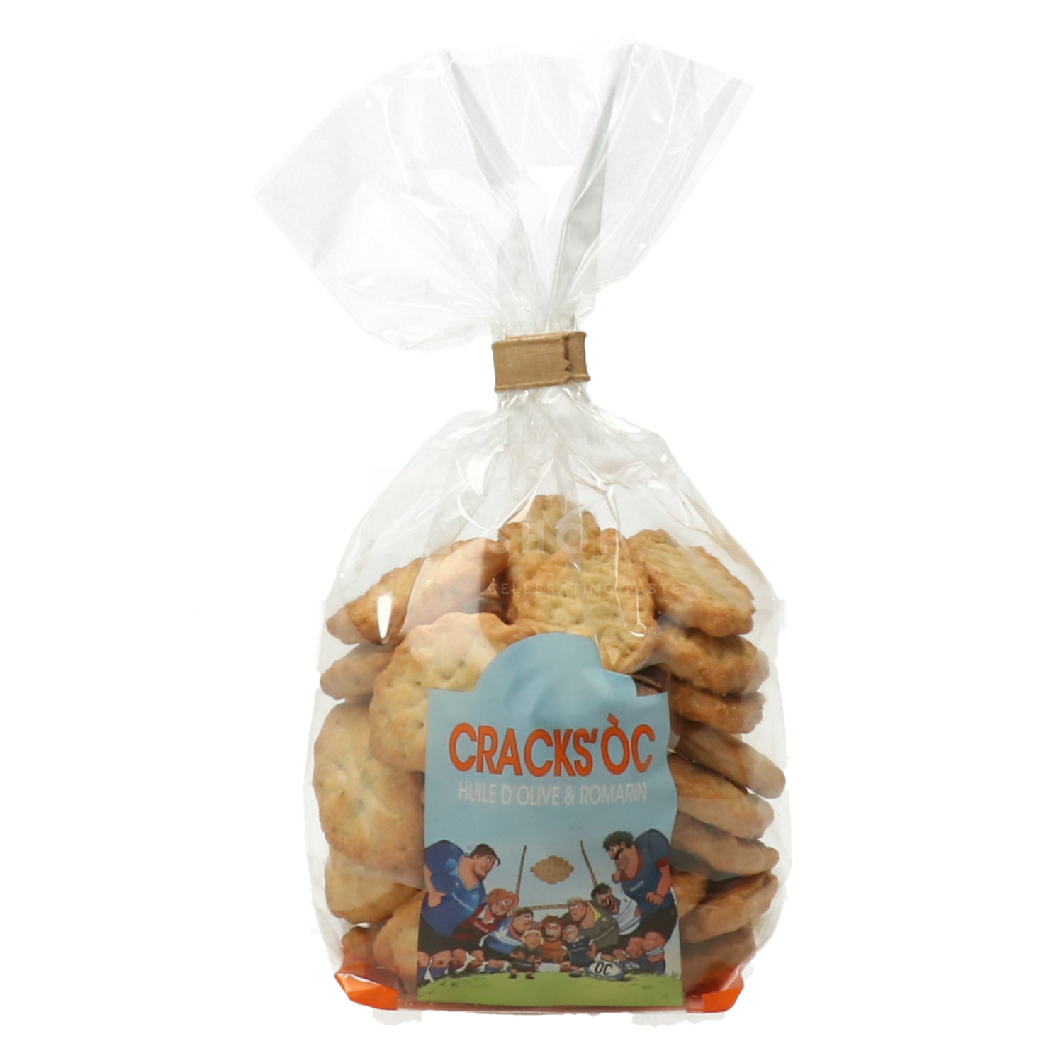Cracks’oc zijn krokante, hartige koekjes op basis van tarwebloem uit Occitanië en hoogwaardige olijfolie. Ze worden verfijnd met geurige rozemarijn, wat zorgt voor een uitgesproken mediterraan karakter. De lichte, luchtige structuur maakt ze perfect als aperitiefhapje of als smaakvolle snack tussendoor.
