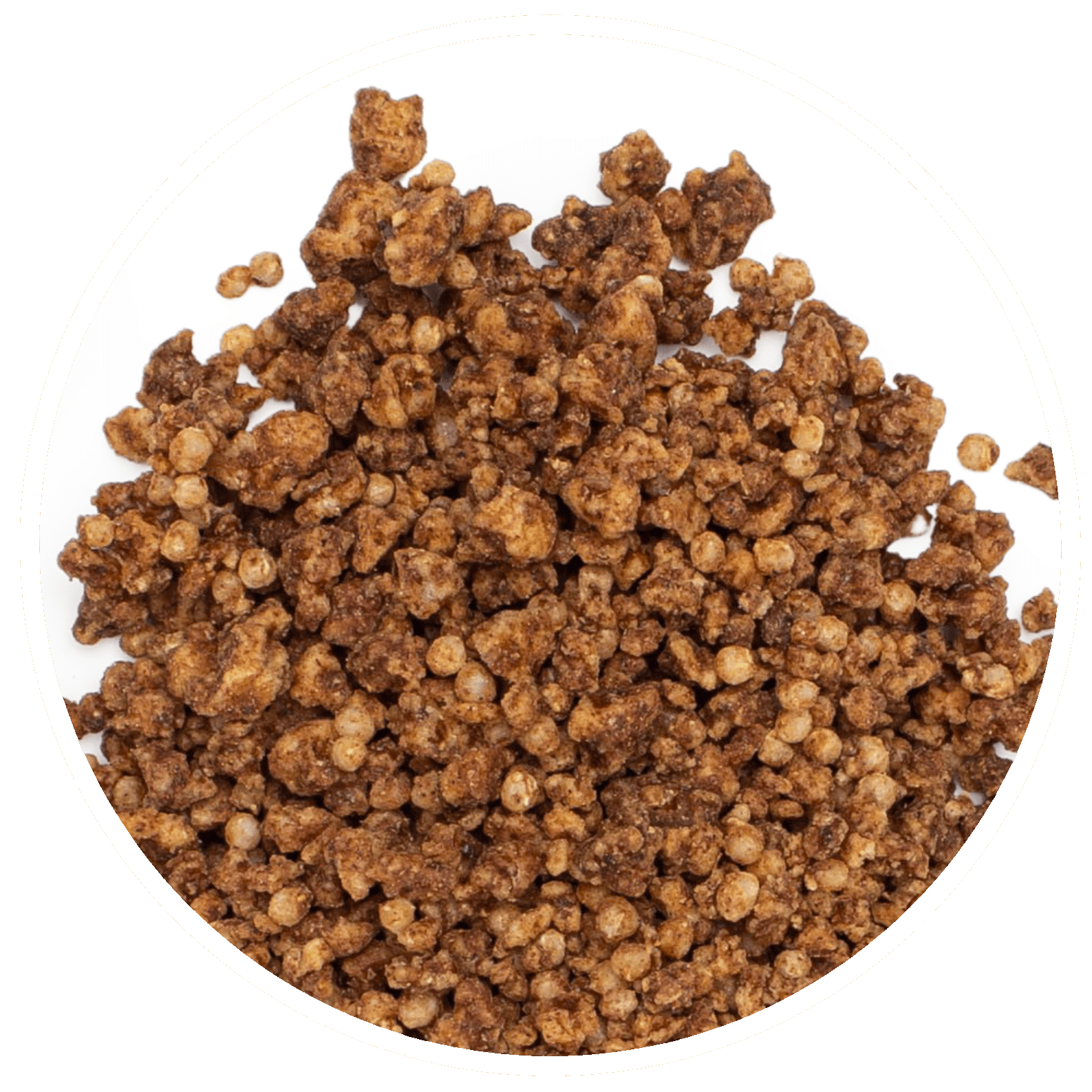 Deze crunch is een ware smaakmaker voor wie houdt van contrast: romig én knapperig, zacht én kruidig. Gebruik het als finishing touch op desserts, ijs, gebak of zelfs in je ontbijt.