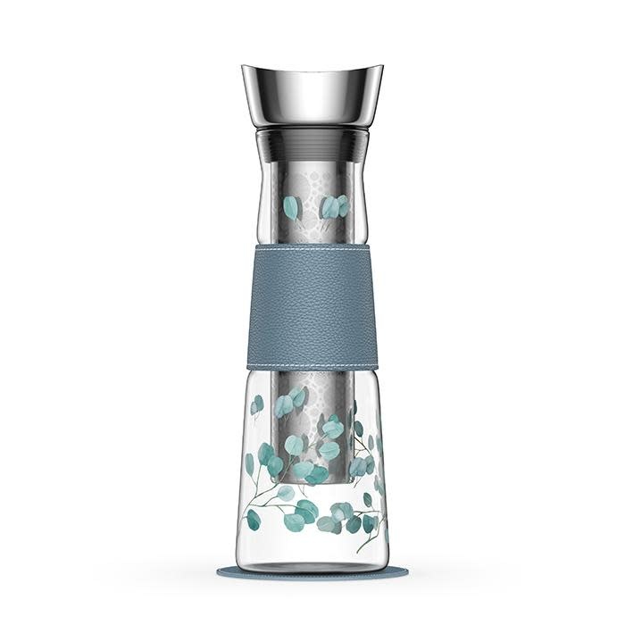 Deze glazen fles met filter Eucalyptus is een prachtige manier om je geliefde thee te serveren met een vleugje elegantie. Met zijn schitterende motief is deze glazen karaf een absolute eyecatcher op elke tafel.