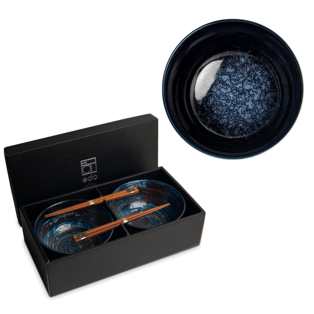 Edo Japan Iro Blue is een elegante 4-delige pokébowlset met kommetjes en eetstokjes, ideaal voor het serveren van zelfgemaakte pokébowls. Verpakt in een luxe geschenkdoos, perfect als cadeau voor liefhebbers van Aziatische cuisine.