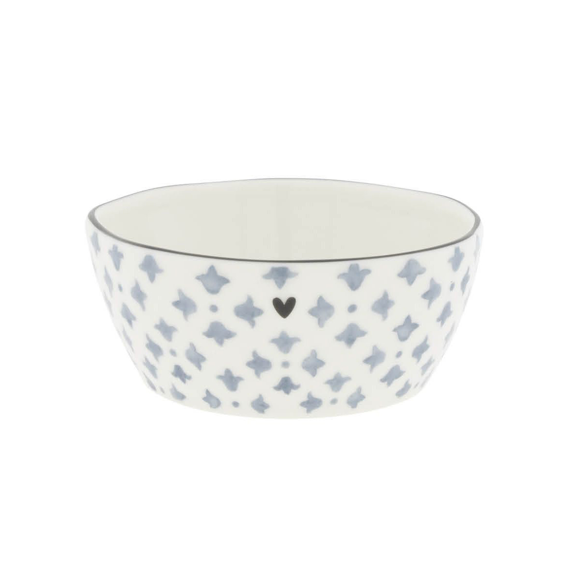 Het "Iris Blue" kommetje van Bastion Collection heeft een charmant patroon van blauwe details en een klein zwart hartje, wat een stijlvolle en speelse uitstraling geeft. Met zijn compacte formaat van 6,8 x 9,5 x 3 cm is dit kommetje ideaal voor het serveren van kleine hapjes, sauzen, dips of lekkernijen zoals fruit en koekjes.